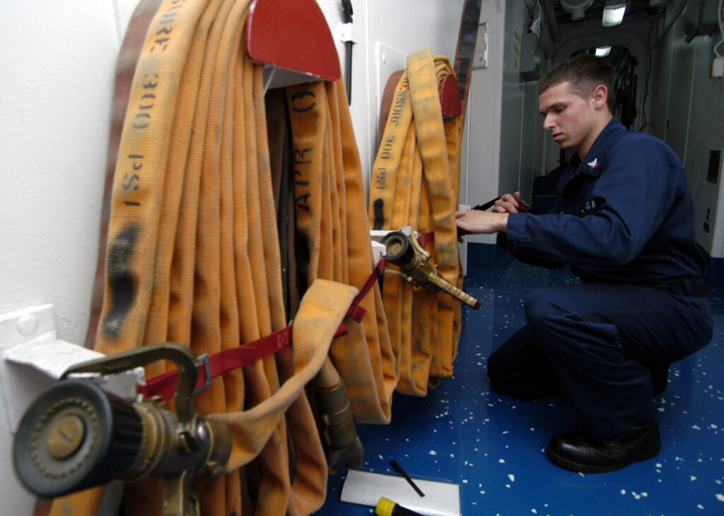Every sailor has received some training in boot camp on damage control, but it’s a rudimentary training at best. In smaller ships, a fire will generally cause the captain to put the ship at battle stations so the crew can fight the fire. The same is true on an aircraft carrier, except aircraft carriers are large and there is always a lot going on. When an aircraft carrier goes to battle stations, nearly half of the crew is assigned to damage control, to include firefighting. The ship has too much going on at all times to do this lightly, so for small fires, there is a dedicated fire department that is there to handle smaller incidents and prevent the ship’s crew from having to go to battle stations several times per week.